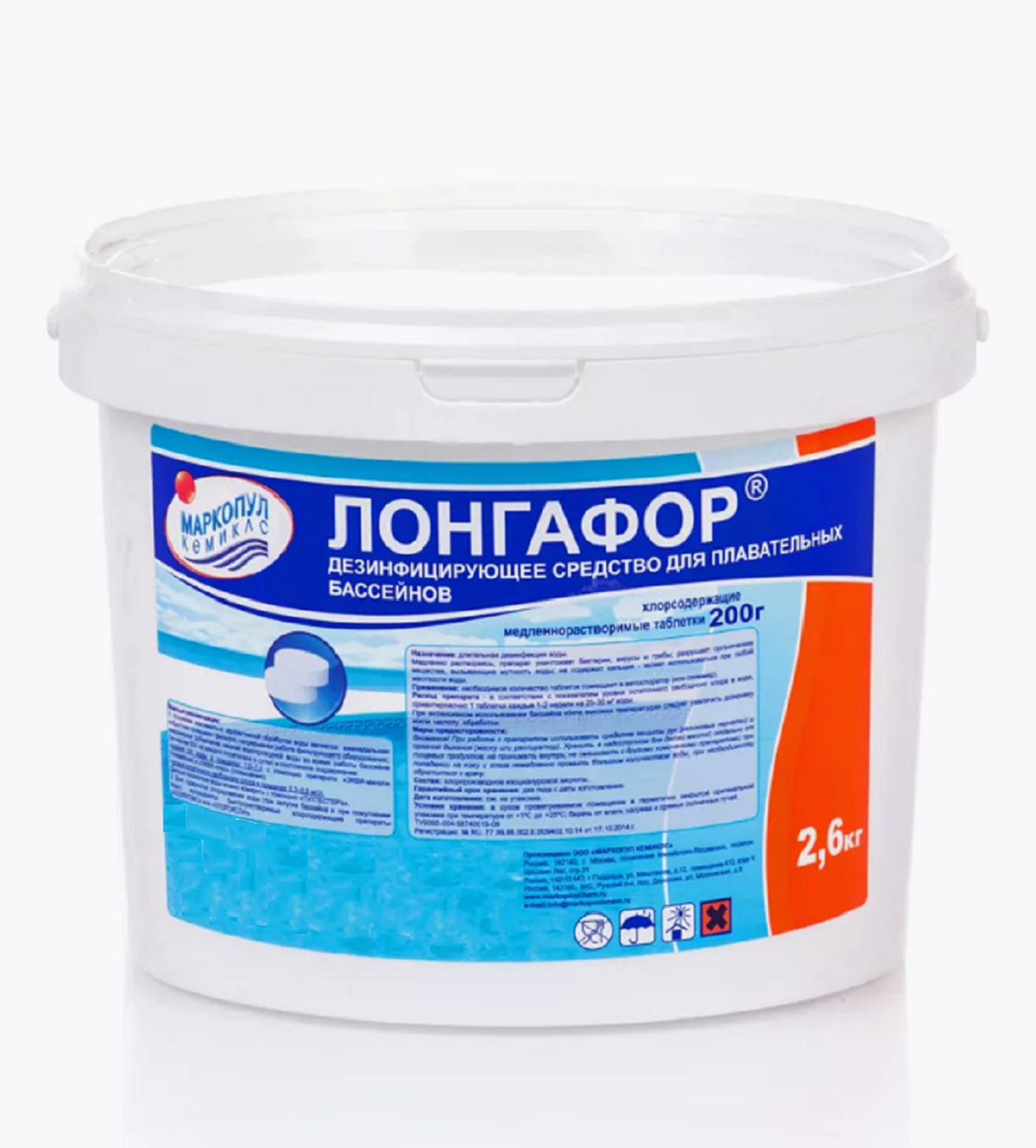 Лонгафор таблетки 200 гр, 2.6 кг, для дезинфекции воды, Маркопул Кемиклс информация: