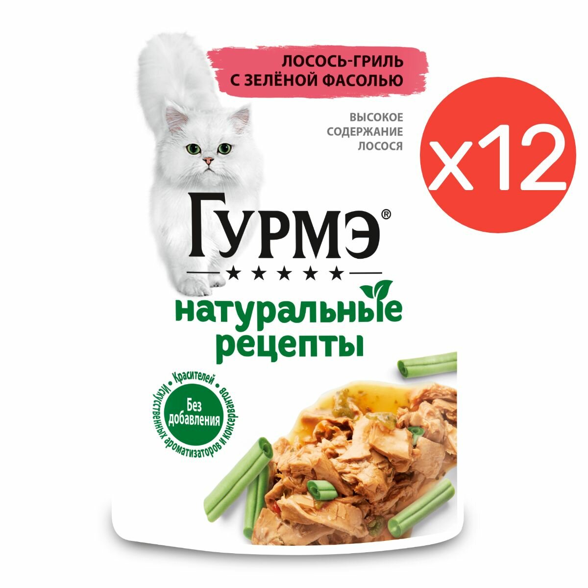 Влажный корм, "Gourmet Гурмэ Натуральные рецепты", для взрослых кошек, Лосось-гриль с зеленой фасолью, 75г 12 шт информация: