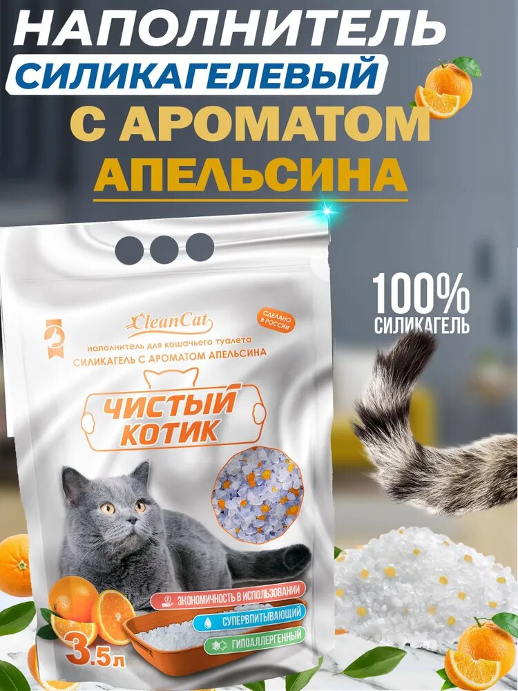 Наполнитель силикагелевый Чистый котик колотый с ароматом Апельсина 1,3 кг/3,5 л, аромат Апельсина информация: