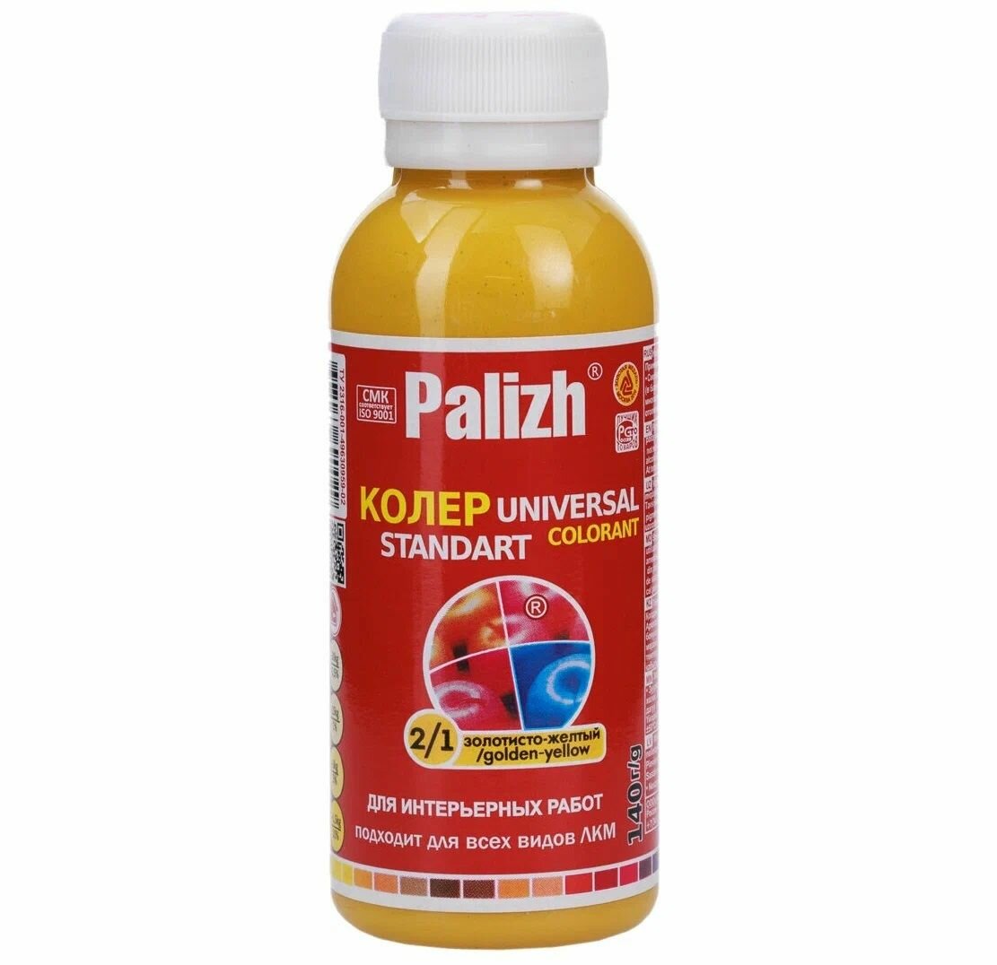 Колер для краски "Palizh STANDART" 0,1л № 2.1 золотисто-желтый информация: