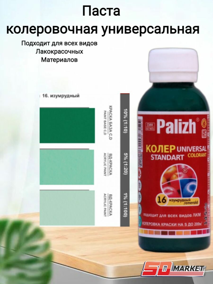 Колер для краски "Palizh STANDART" 0,1л №16 изумрудный информация: