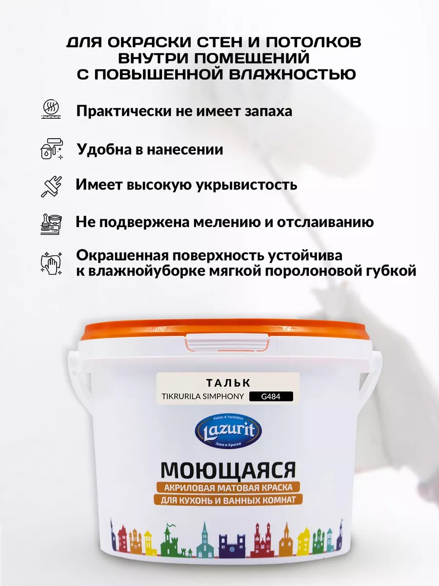 LAZURIT Моющаяся краска для кухонь и ванн 3кг/G484 тальк информация: