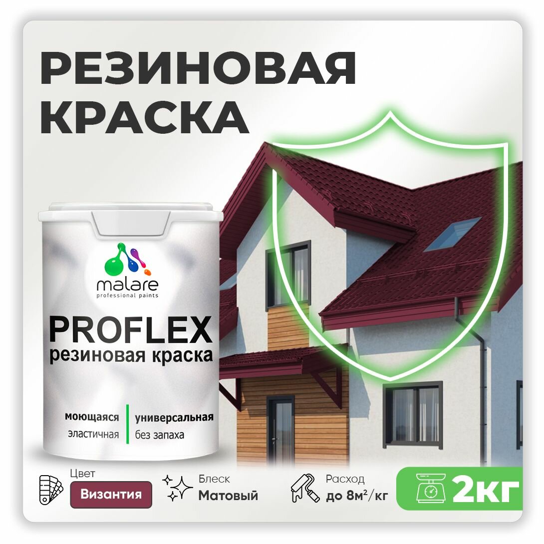 Краска резиновая Malare ProfleX жидкая резина для наружных и внутренних работ, быстросохнущая моющаяся, матовая, византия, 2 кг информация: