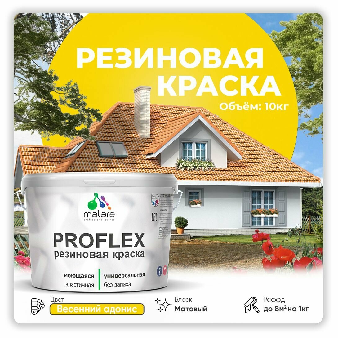 Краска резиновая Malare ProfleX жидкая резина для наружных и внутренних работ, быстросохнущая моющаяся, матовая, весенний адонис, 10 кг информация: