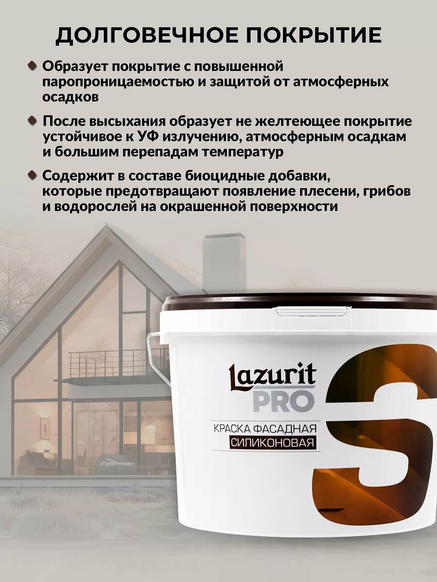 10 цен на Lazurit PRO Краска Силиконовая фасадная матовая 9л