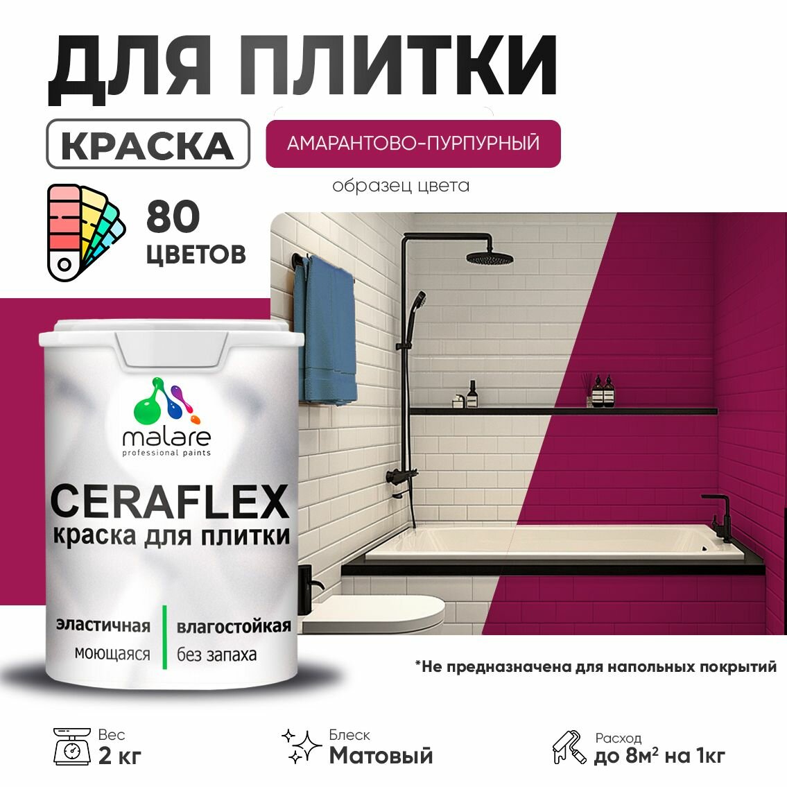 Акриловая краска для плитки Malare Ceraflex для керамической и кафельной плитки, стен в кухне и ванной, моющаяся быстросохнущая без запаха, матовая, амарантово-пурпурный, 2 кг информация: