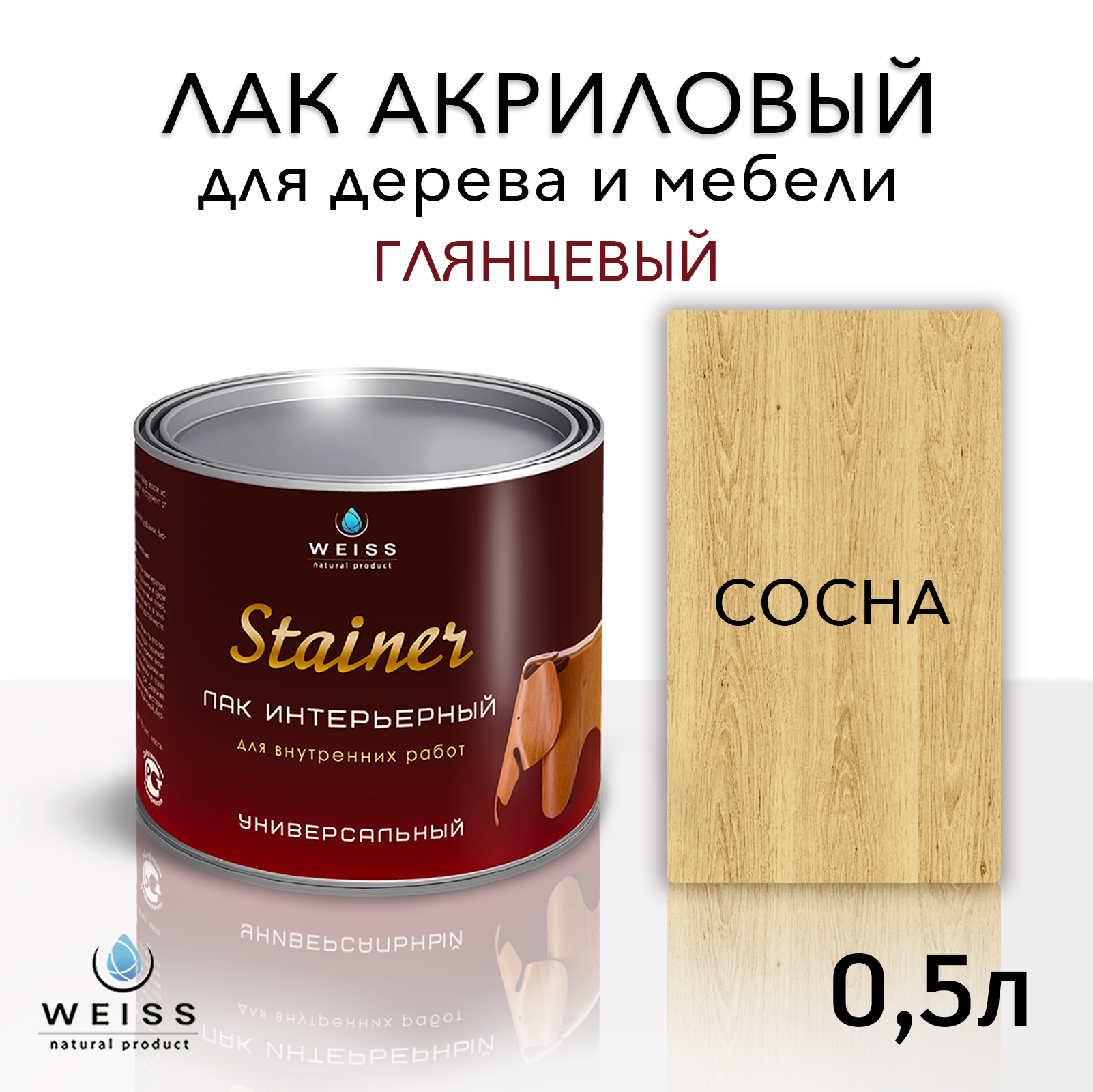 10 цен на Лак для дерева акриловый сосна, глянцевый, Weiss natural product, без запаха, самовыравнивающийся, 0.5л