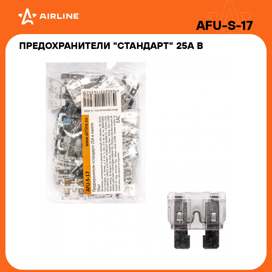 Предохранители "стандарт" 25A в пакете 50шт. AFU-S-17 AIRLINE информация: