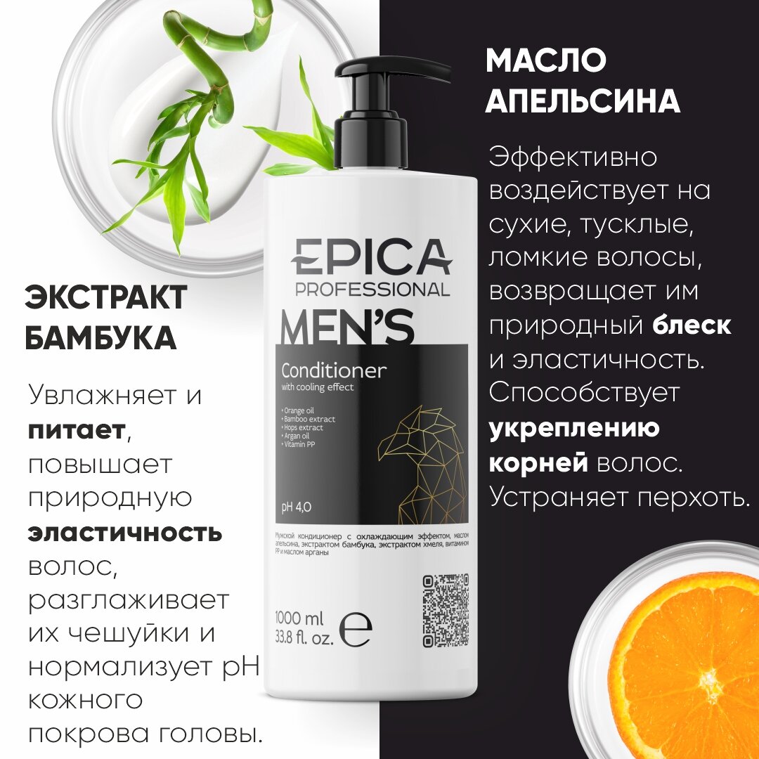 EPICA Professional кондиционер Men's с охлаждающим эффектом для всех типов волос, 250 мл, 250 г