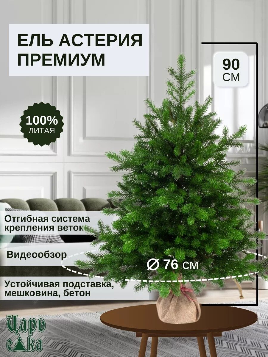 Отзывы на Елка новогодняя Царь Елка Астерия Премиум высота 90 см, искусственная, в мешочке, литая