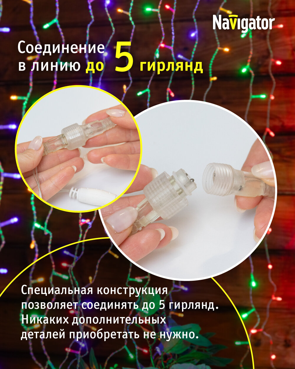 Гирлянда световой занавес Navigator 95 116, 5 х 2.5 м, разноцветный свет, прозрачный провод, IP44 информация: