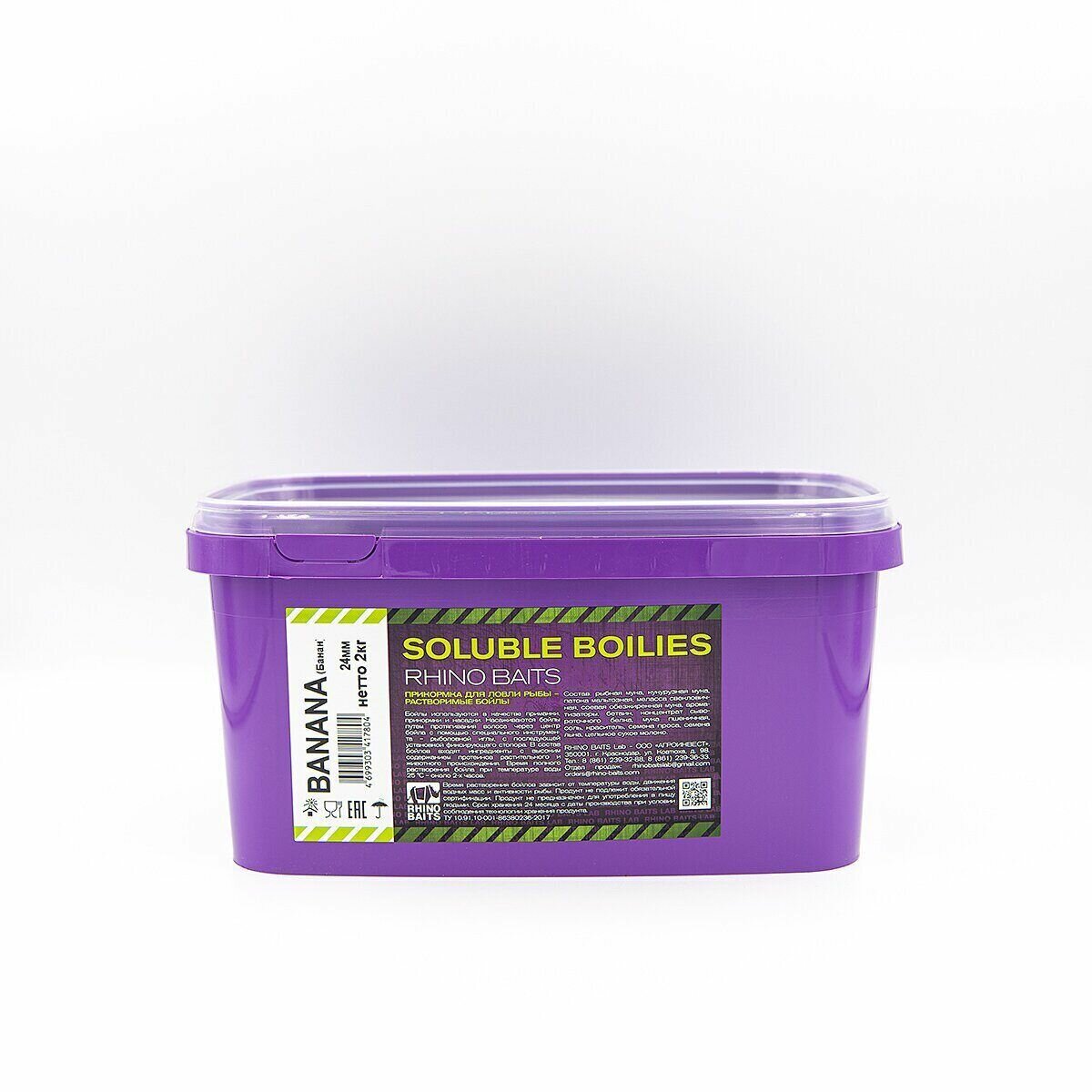 RHINO BAITS Бойлы растворимые Banana (банан) 24 мм, ведро 2 кг информация: