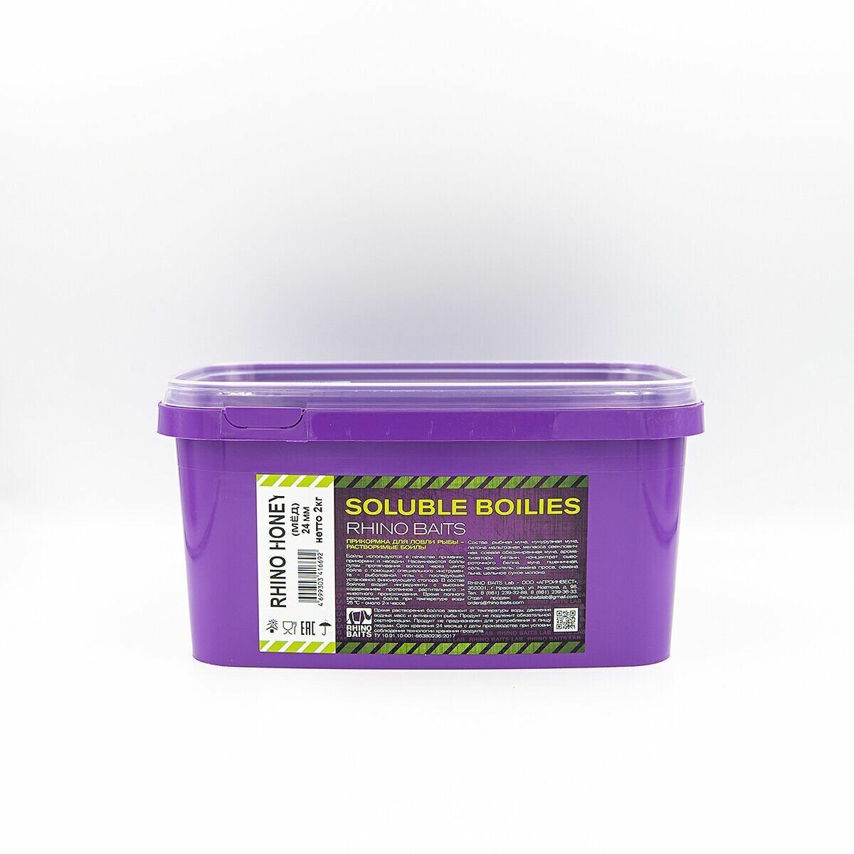 RHINO BAITS Бойлы растворимые Rhino Honey (мёд), 24 мм, ведро 2 кг информация: