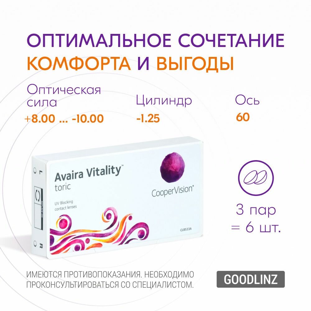 10 цен на CooperVision Avaira Vitality toric (6 линз) BC 8,5 SPH -4.25 CYL -1,25 AXIS 60