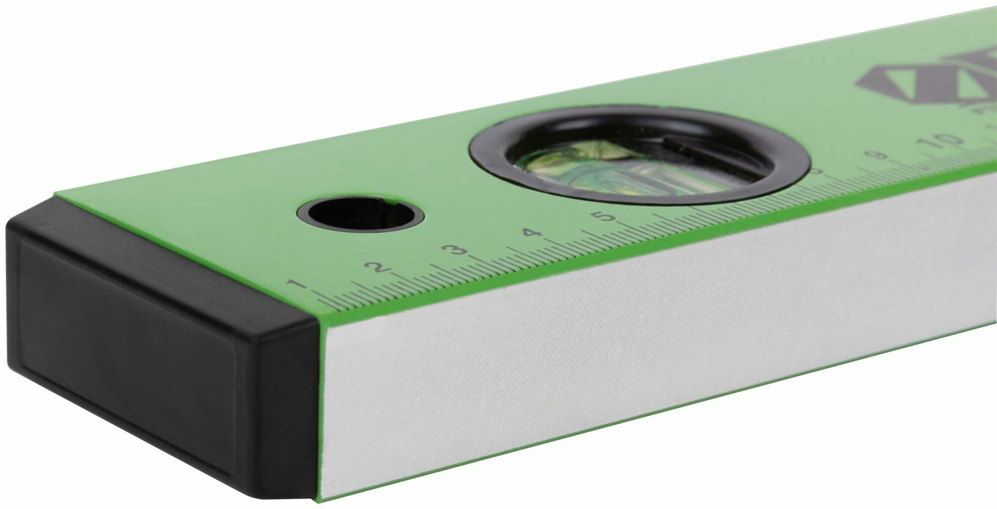 10 цен на Уровень "Техно", 3 глазка, зеленый корпус, фрезерованная рабочая грань, шкала 400 мм