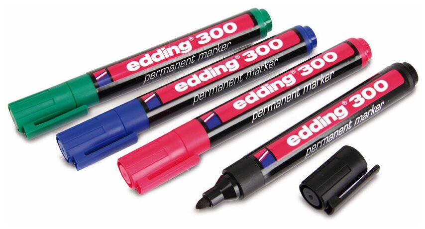 Маркер перманентный (нестираемый) EDDING 300, 1,5-3 мм, круглый наконечник, черный, E-300/1