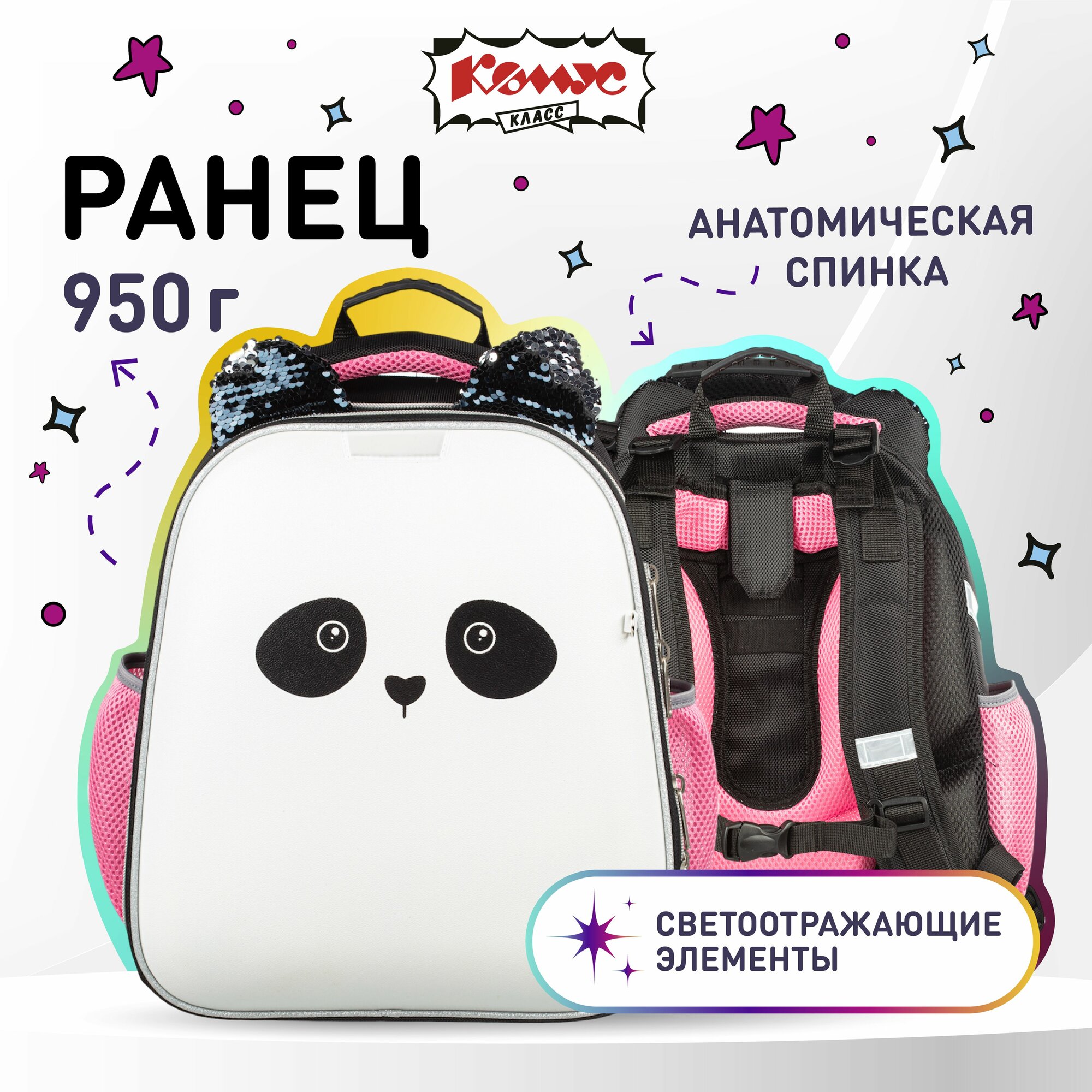 10 цен на Ранец школьный Комус Класс Panda, анатомический, 2 отделения, 4 кармана