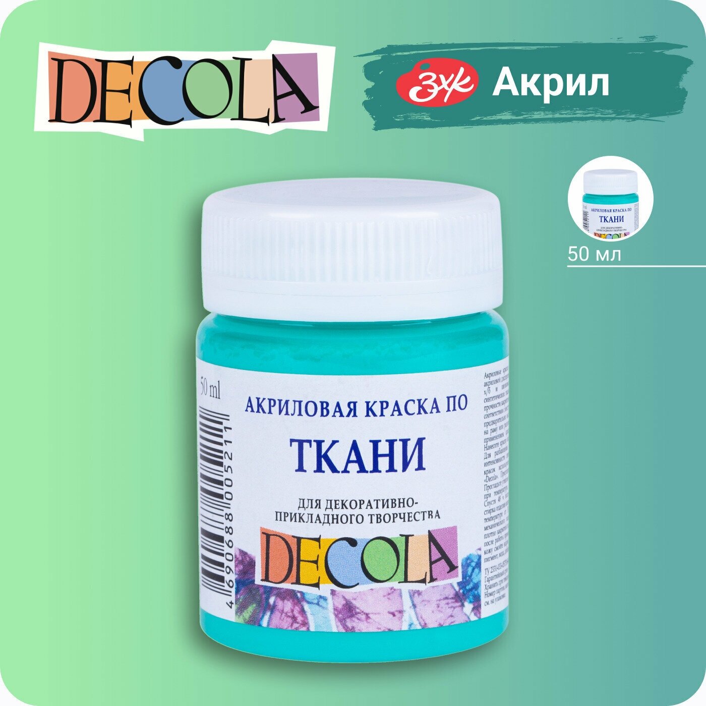 Краска акриловая по ткани Невская палитра DECOLA, 50 мл, мятная информация: