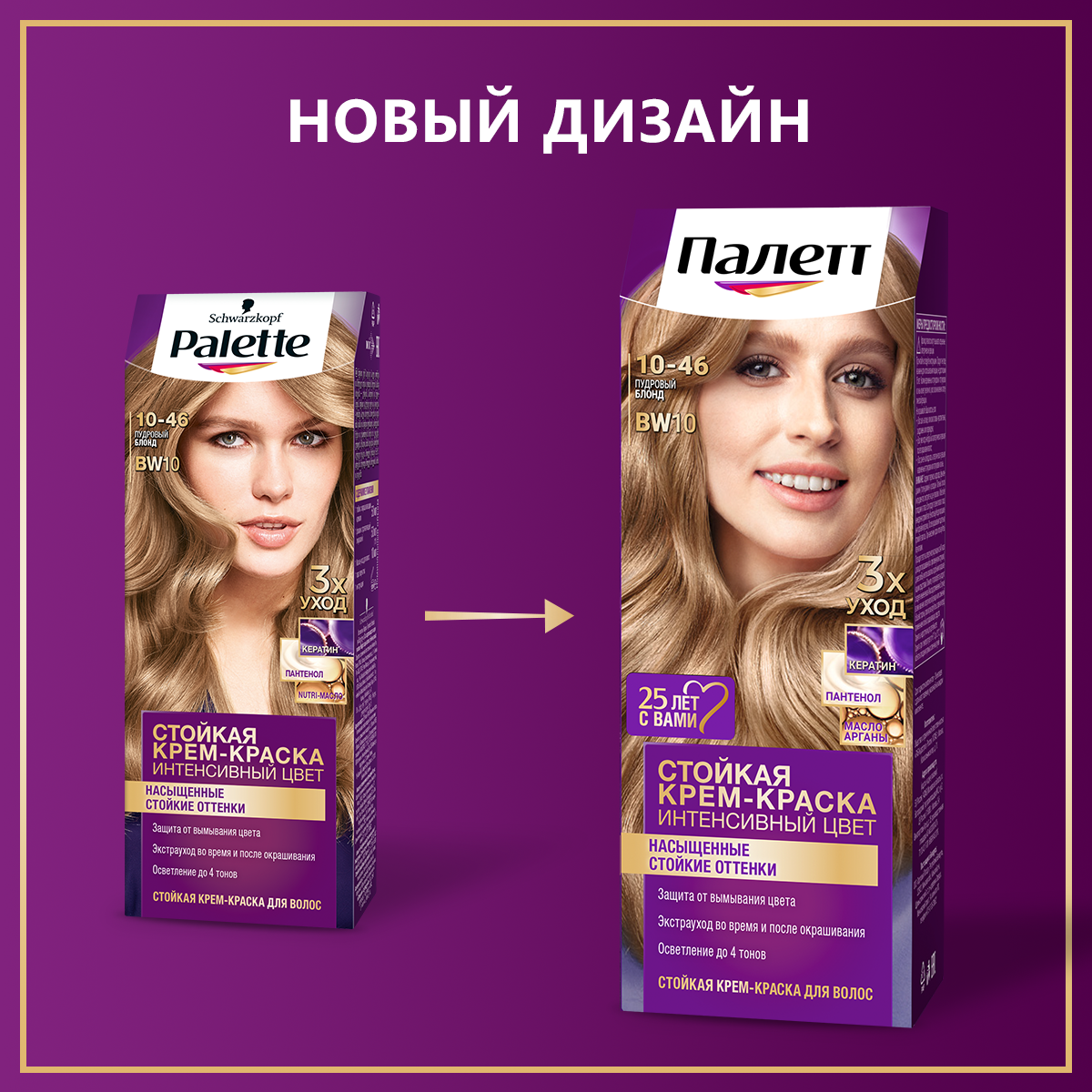 Палетт Стойкая крем-краска Интенсивный цвет, BW10 Пудровый Блонд, 110 мл - 1 шт