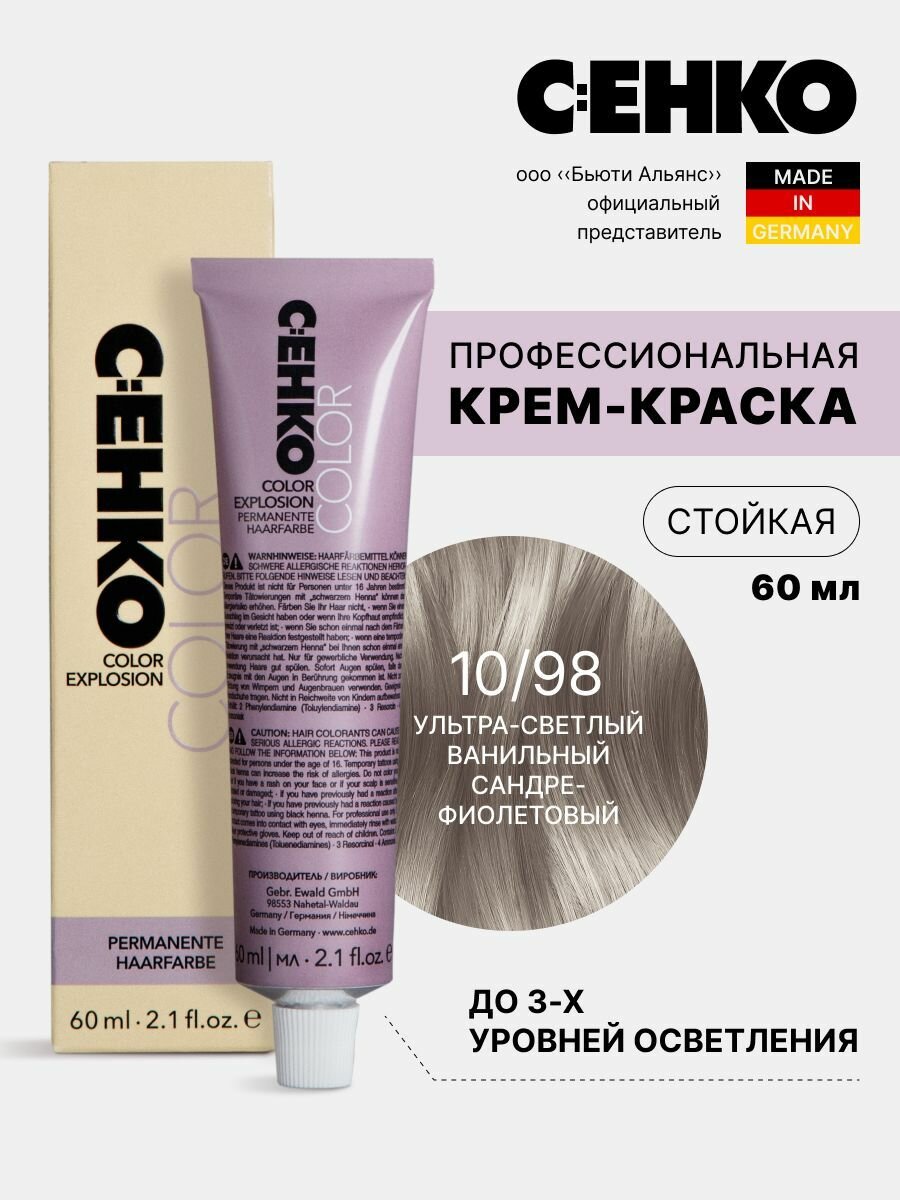 Профессиональная краска для волос 10/98 Ультра светлый блондин сандре фиолетовый, пепельный, для блонда, стойкая, перманентная, для седых волос, 60 мл, C:EHKO COLOR EXPLOSION информация: