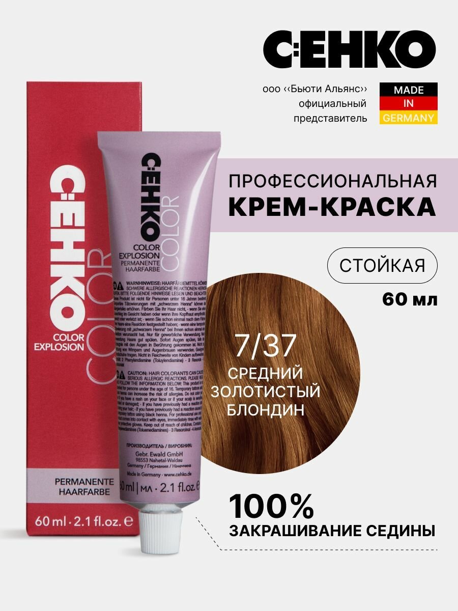 Профессиональная краска для волос 7/37 Средний золотистый блондин, коричневый, русый, шоколадный, стойкая, для седых волос, 60 мл, C:EHKO COLOR EXPLOSION информация: