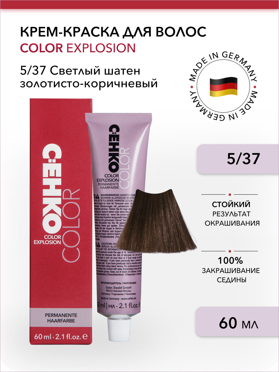 10 цен на C:EHKO, Крем-краска для волос №5/37 Светлый шатен золотисто коричневый, 60 мл