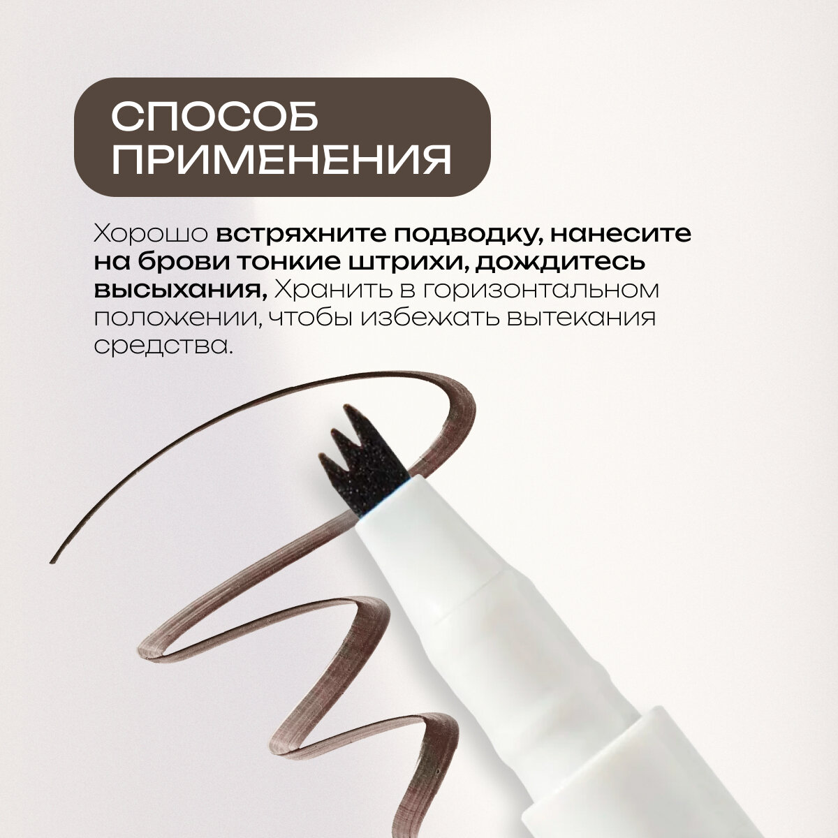 Подводка-фломастер для бровей, коричневый, с эффектом микроблейдинга, тон 02