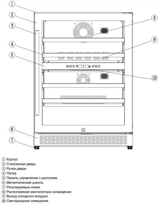 | Емкость винного шкафа, бут. | 49 |