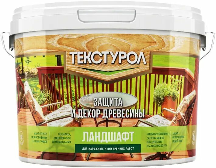 Текстурол Ландшафт деревозащитное средство на вод. основе База С Бесцветный 9л