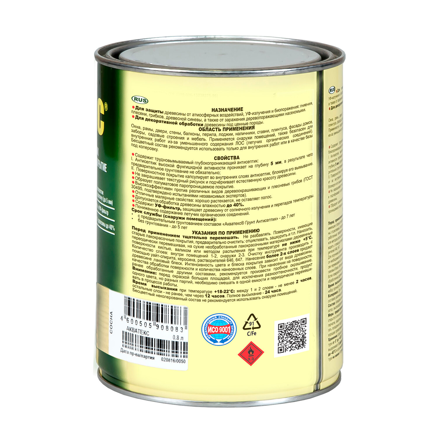 Защитно-декоративное Акватекс покрытие для древесины, пропитка по дереву, 2в1, сосна, 0,8 л