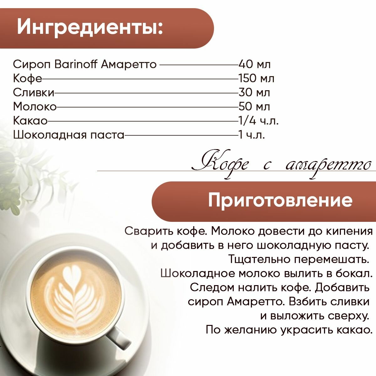 Сироп Barinoff Амаретто (для кофе, коктейлей, десертов, лимонада и мороженого), 250 мл/0,25л информация:
