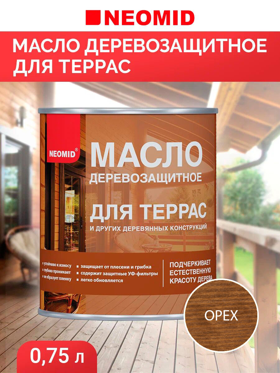 Масло деревозащитное для террас и деревянных конструкций NEOMID орех (0,75 л) информация: