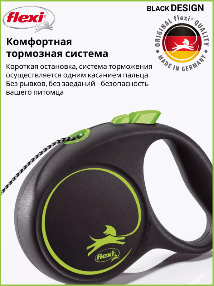 Поводок-рулетка для собак Flexi Black Design XS, трос 3 метра, цвет - черный/зеленый информация: