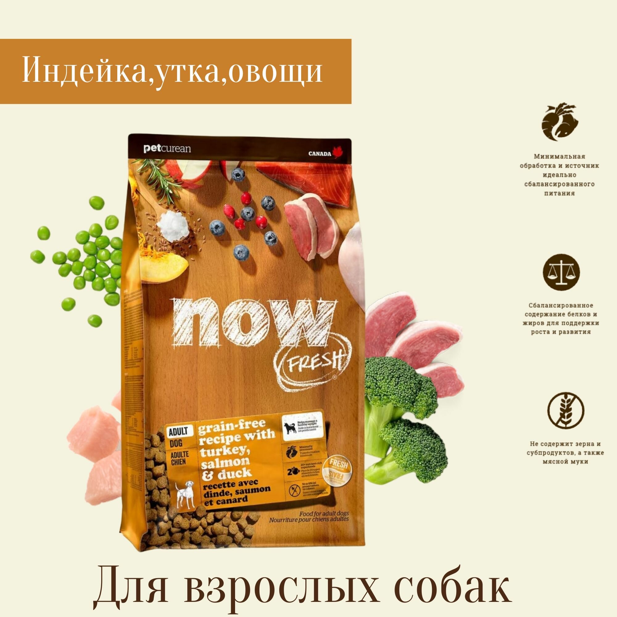 Now Fresh беззерновой корм для взрослых собак со свежей индейкой, уткой, лососем, Adult Grain-free Recipe, Turkey, Duck, Salmon, 1,59 кг.