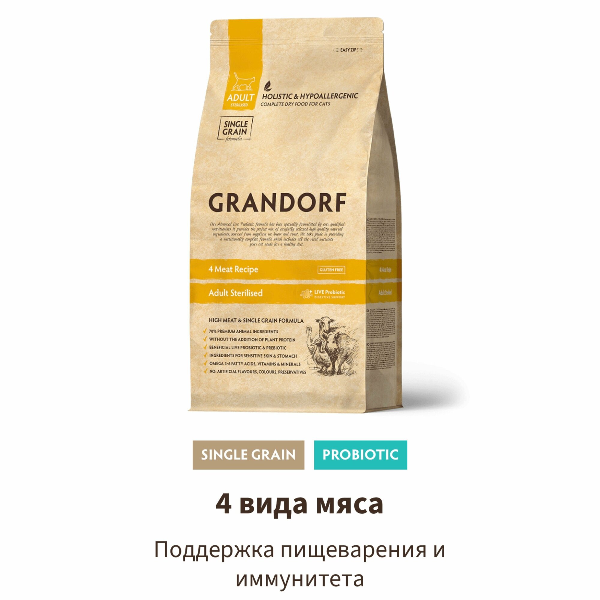 GRANDORF CAT 4 Meat PROBIOTIC STERILISED (4 мяса c пробиотиками для стерилизованных кошек) (2 кг)