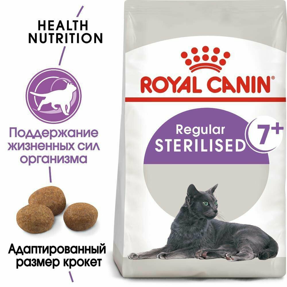 Корм сухой Royal Canin STERILISED 7+ Питание, способствующее поддержанию оптимального веса, для стерилизованных кошек и кастрированных котов в возрасте старше 7 лет, 1,5кг
