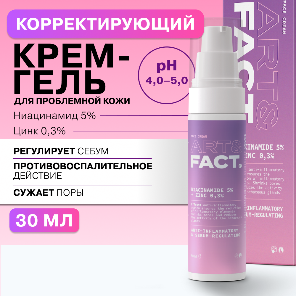 ART&FACT. Корректирующий крем-гель антиакне для проблемной кожи с ниацинамидом и цинком для борьбы с несовершенствами и постакне