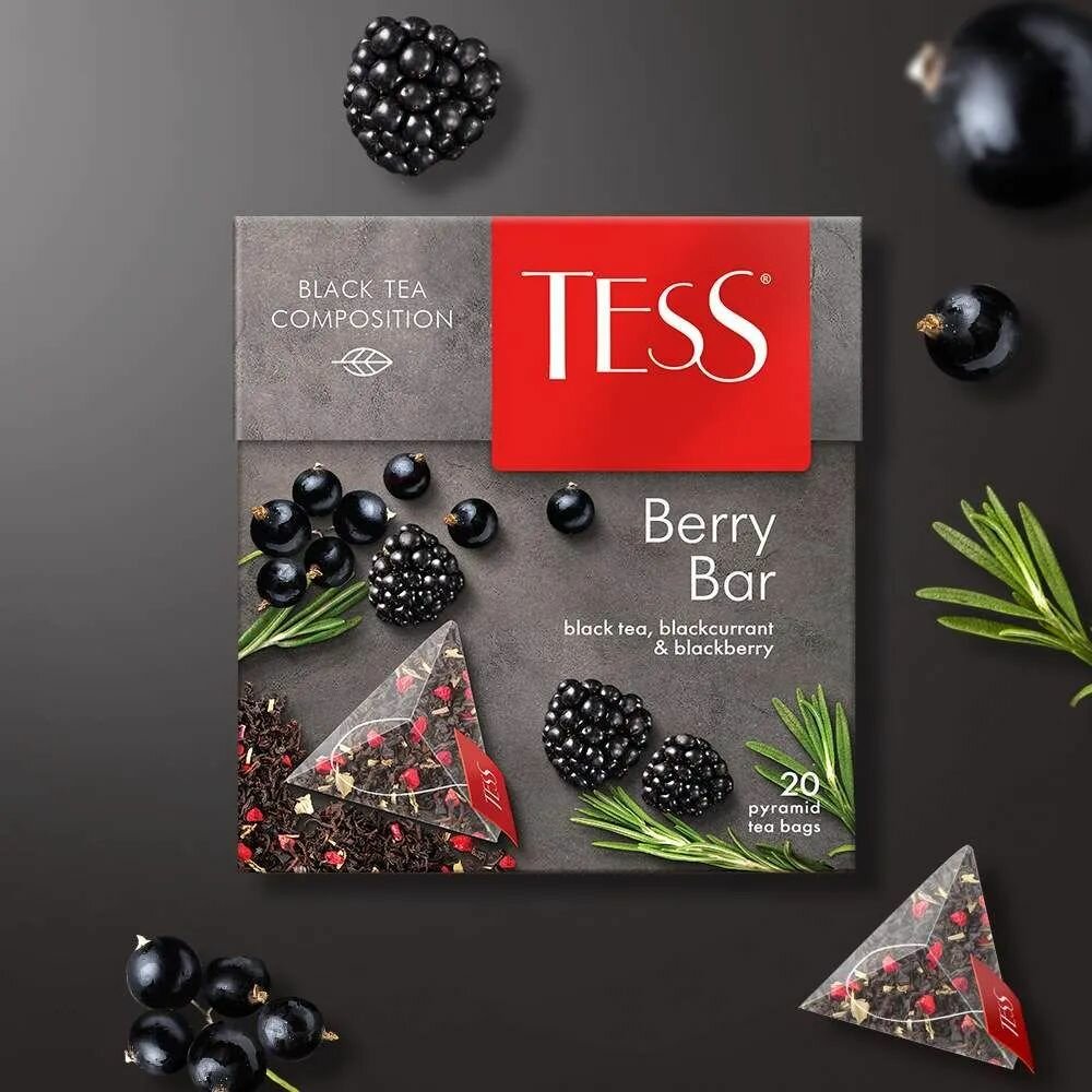 Чай в пирамидках черный Tess Berry Bar (Берри Бар) 20 пак. Ежевика, черная смородина. информация: