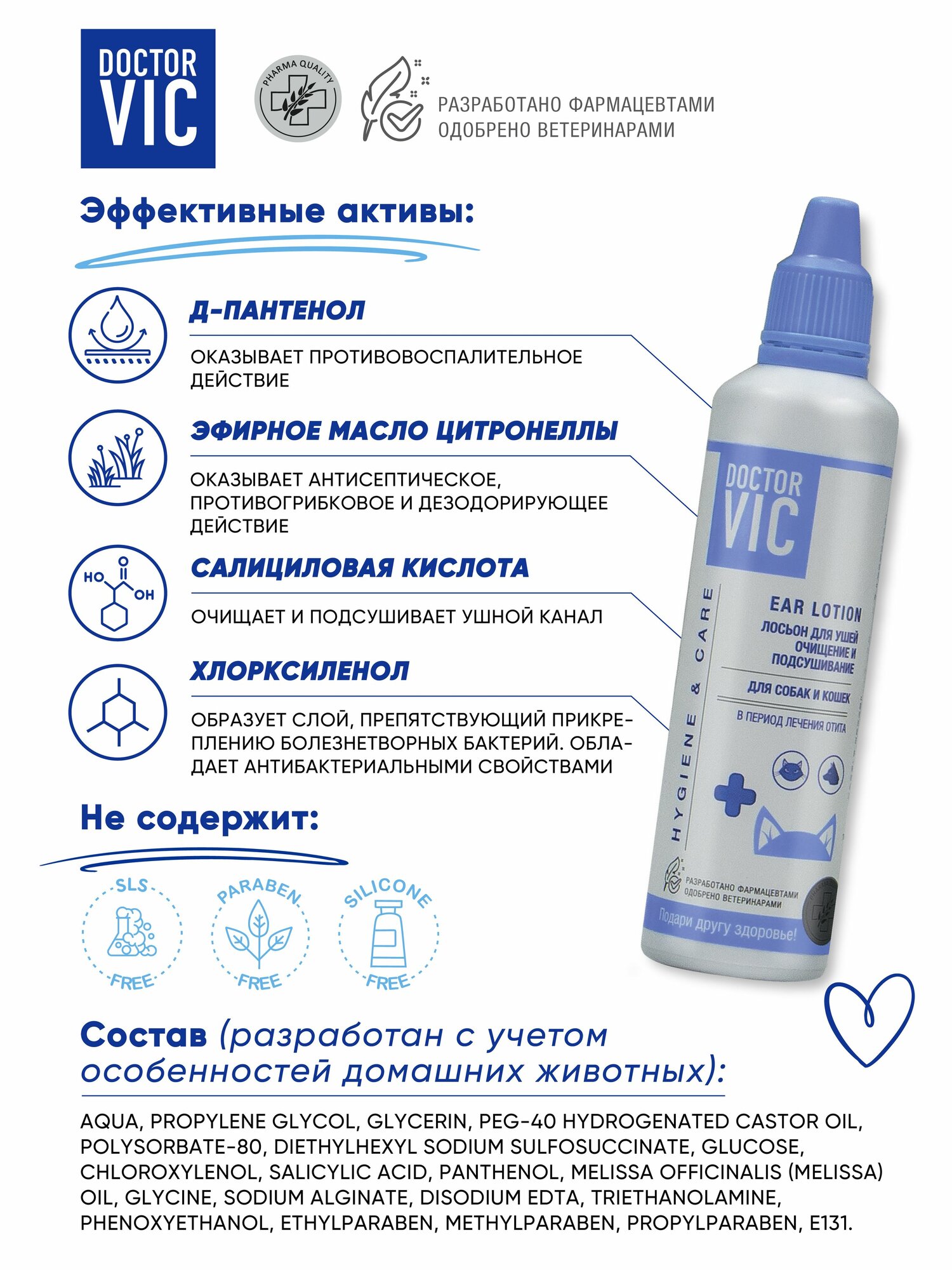 Лосьон Doctor VIC для ушей Очищение и подсушивание для кошек и собак , 60 мл