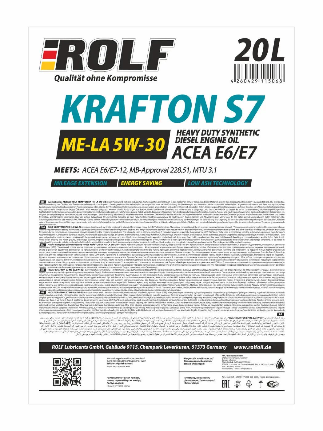 ROLF Rolf Krafton S7 Me-La Синт. 5W30 20Л E4/E6 "В" информация: