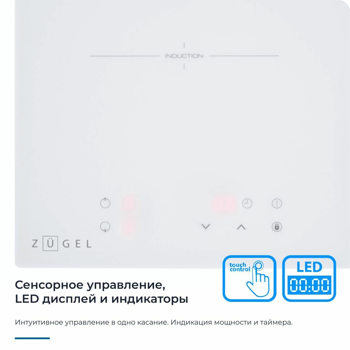 10 цен на Индукционная варочная панель ZUGEL ZIH293W, сенсорное управление, 9 уровней мощности, блокировка от детей, сенсор наличия посуды, таймер, белый