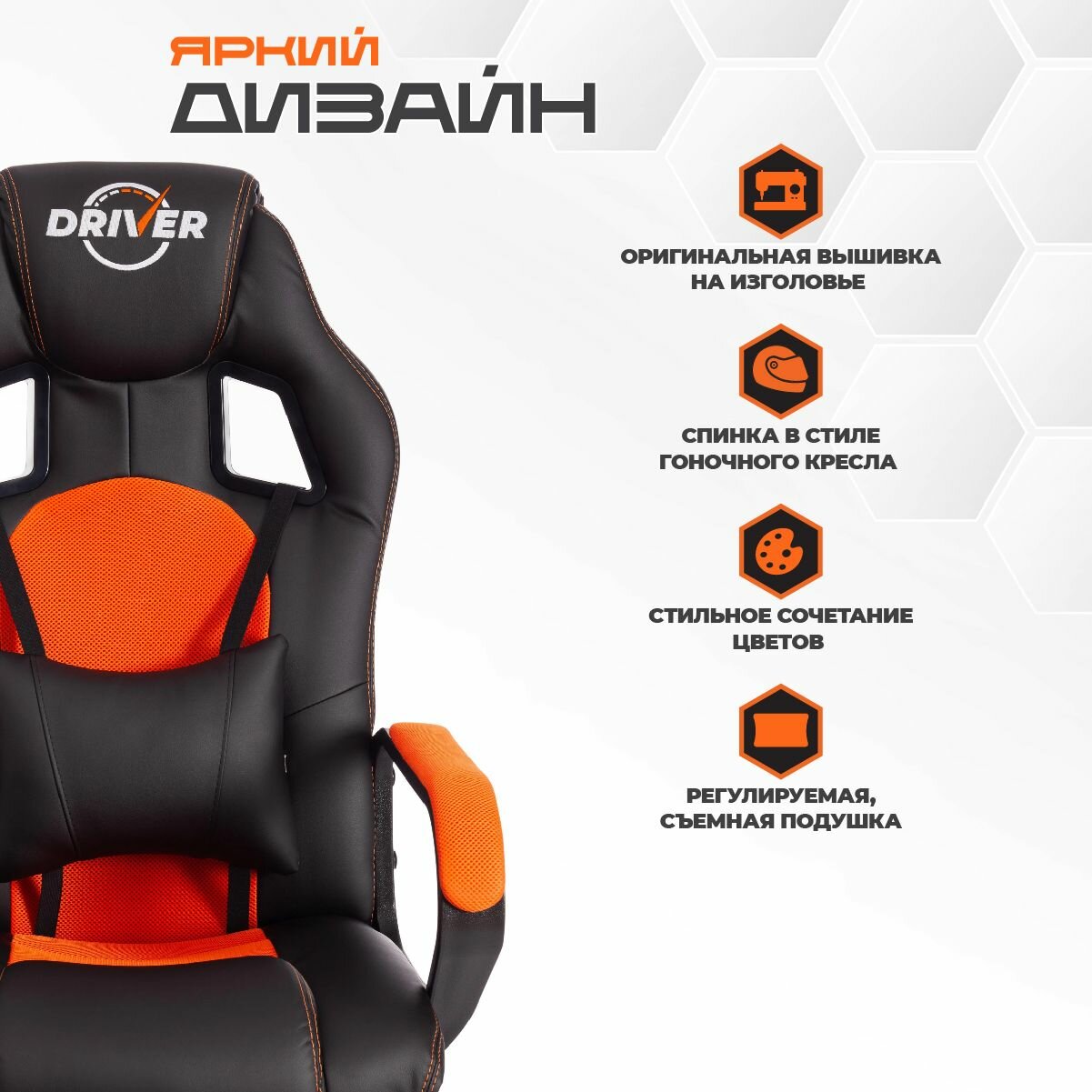 TetChair Кресло компьютерное DRIVER 22 экокожа+ткань, черный / оранжевый информация: