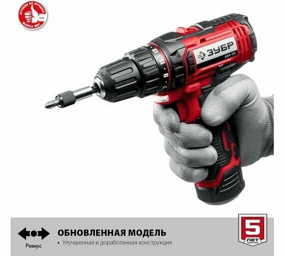 Дрель-шуруповерт ЗУБР ДШЛ-125-22, 12В, 2 АКБ (2Ач), в кейсе