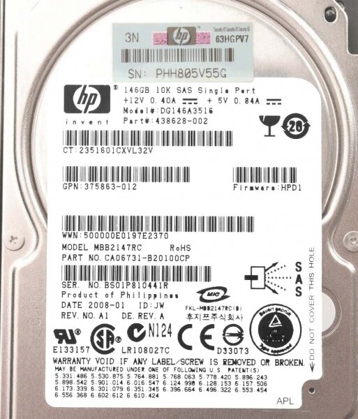 Жесткий диск HDD HP 146GB DG146A3516 информация: