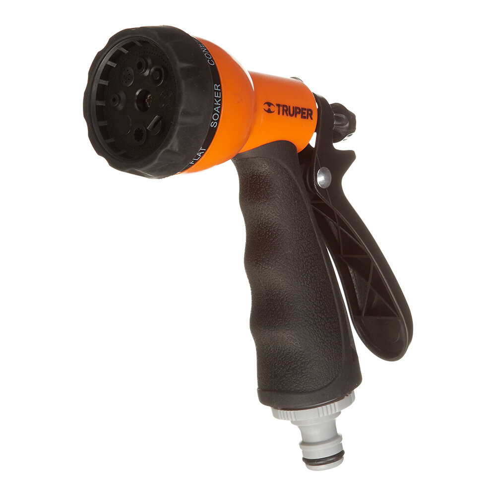 Пистолет для полива TRUPER / Трапер с фиксатором, из пластика, черно-оранжевый, 9 режимов распыления, 20х12х3см / сад и огород информация: