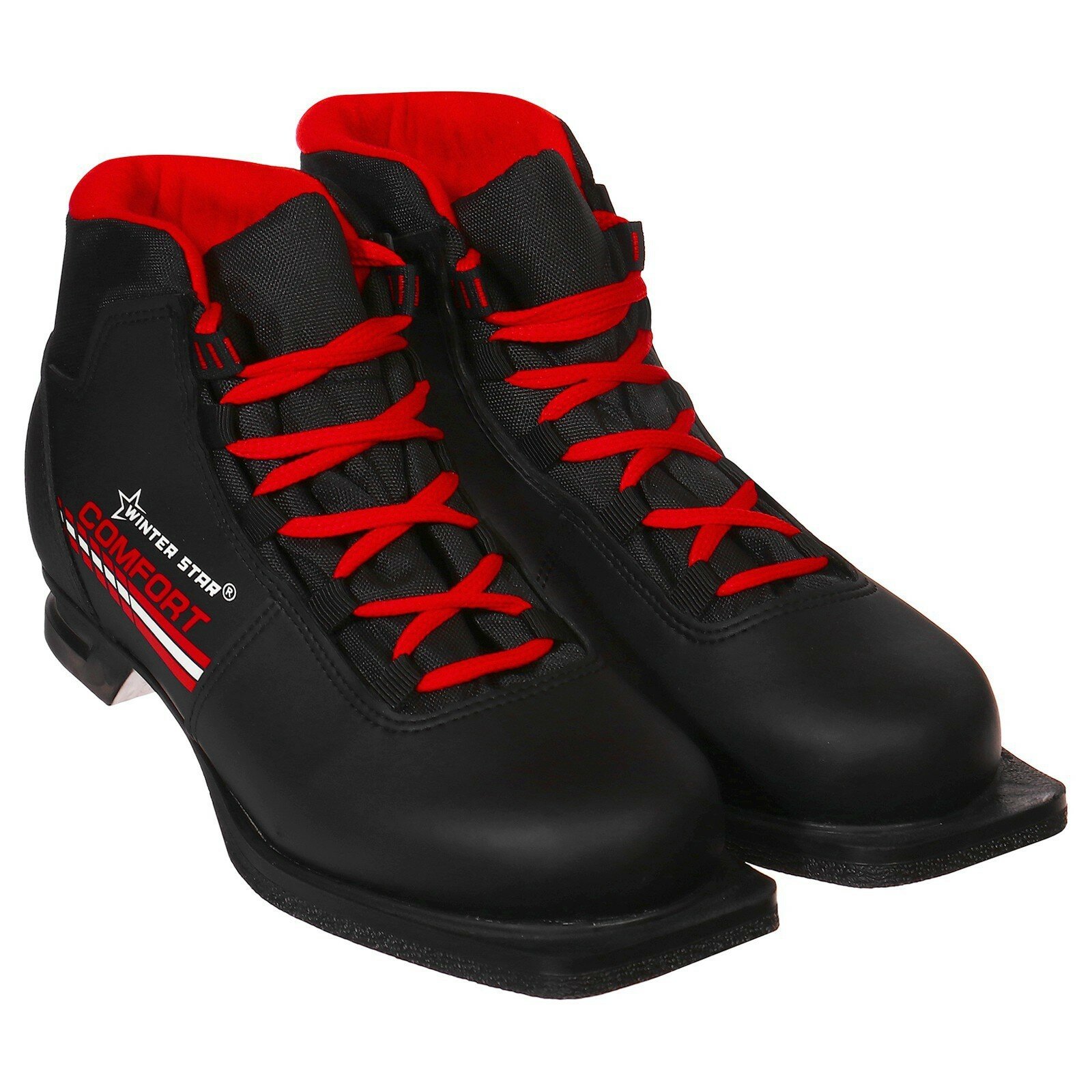 Winter Star Ботинки лыжные Winter Star comfort, NN75, искусственная кожа, цвет чёрный/красный, лого белый, размер 39