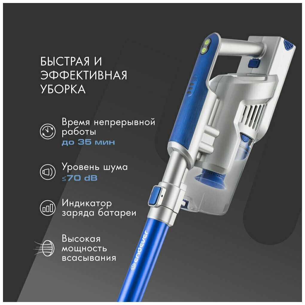 Беспроводной вертикальный пылесос для дома Endever VC-303 / синий