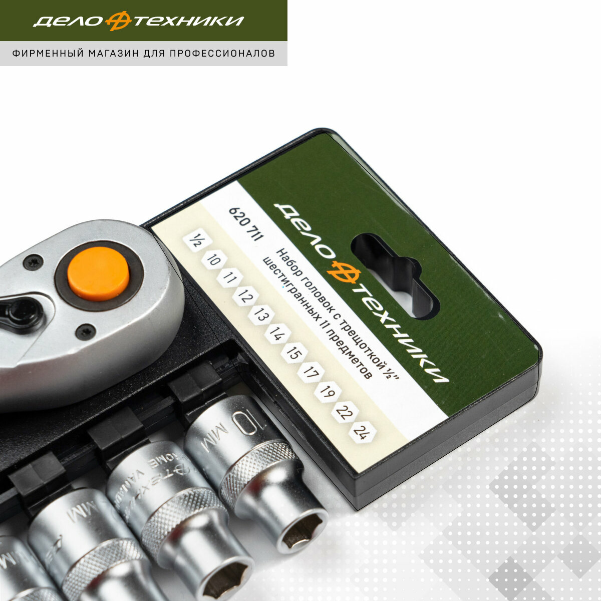 Дело Техники Набор головок 6-гр. с трещоткой 1/2 11 пр.10,11,12,13,14,15,17,19,22,24ДТ/12 620711 информация: