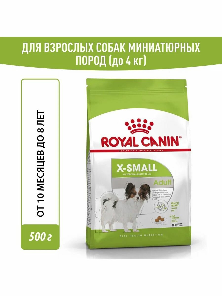 ROYAL CANIN X-SMALL ADULT 500 г сухой корм для собак миниатюрных размеров от 10 месяцев до 8 лет 1 шт