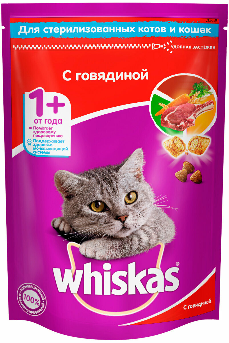 Сухой корм для стерилизованных кошек Whiskas с говядиной